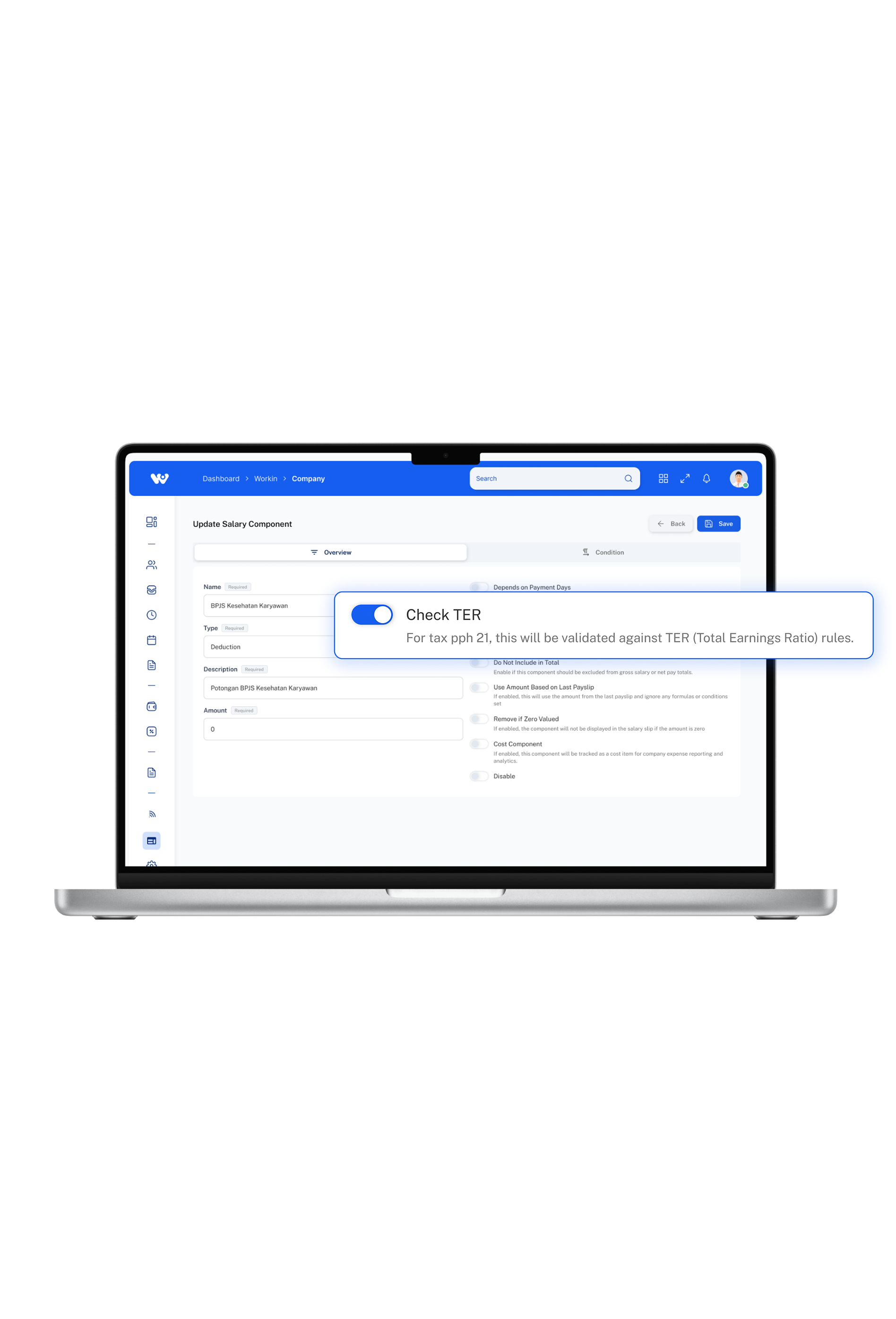 Workin mengintegrasikan berbagai komponen, mulai dari absensi, lembur, cuti, tunjangan, hingga BPJS dan pajak, sehingga semua data karyawan langsung tersinkron untuk perhitungan gaji.